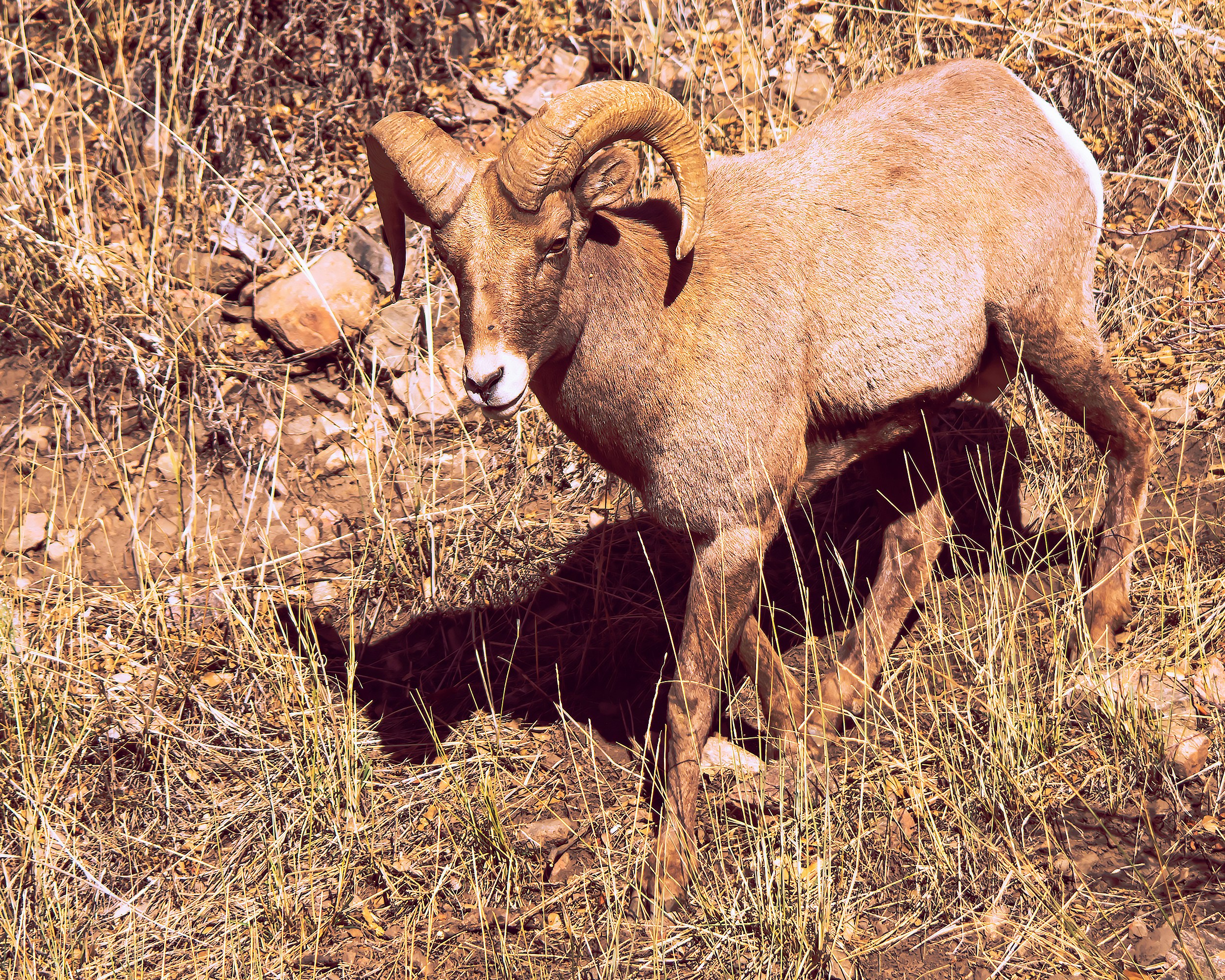 • Has long, straight horns