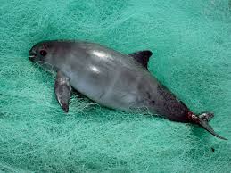 The Vaquita is a tiny dolphin-like porpoise, often called the “panda of the sea” because of its dark eye patches.